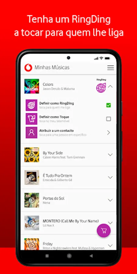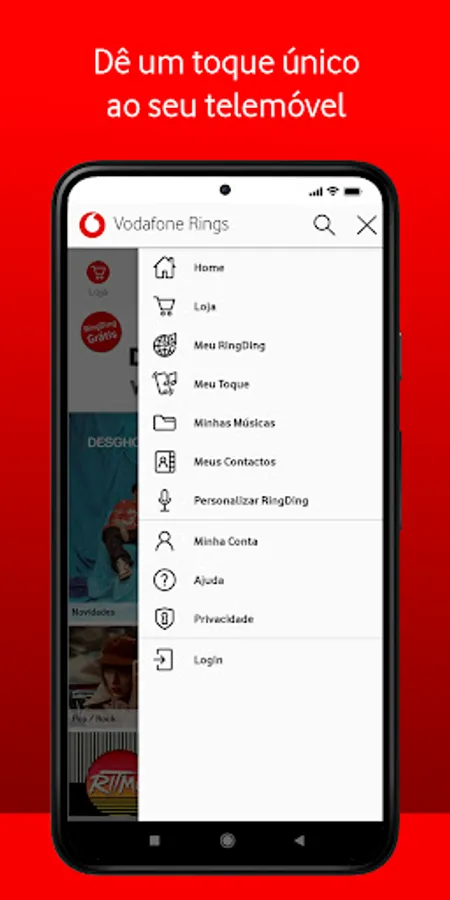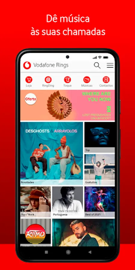 Com a App Vodafone Rings, navegue pelas últimas novidades do mundo da música e tenha-as no seu telemóvel para: