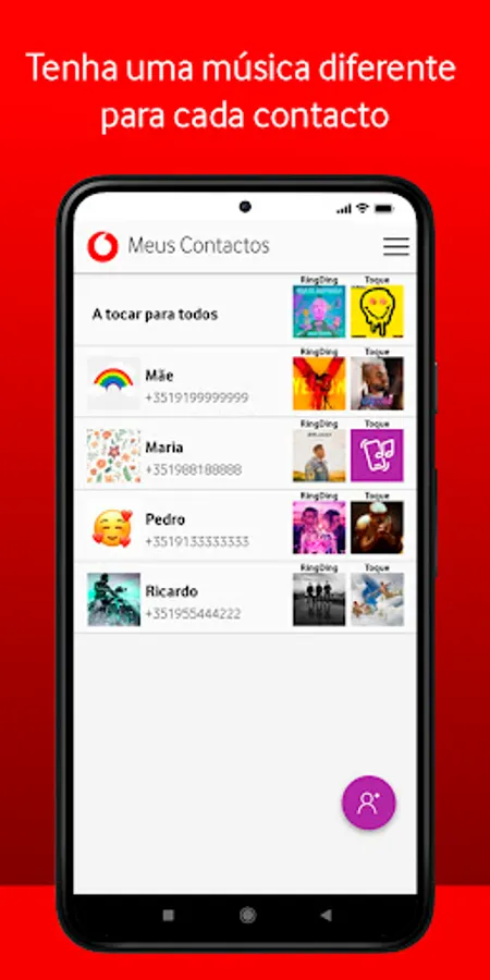 Pode atribuir músicas a cada um dos seus contactos, de forma simples e totalmente individualizada: