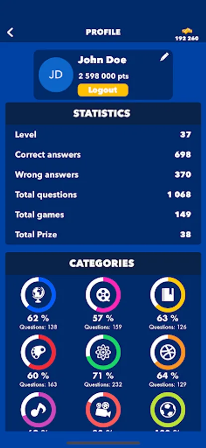 Test your general knowledge and discover all available categories: geography, entertainment, history, art and literature, science and nature, sports, music, films and football! Take your pick!