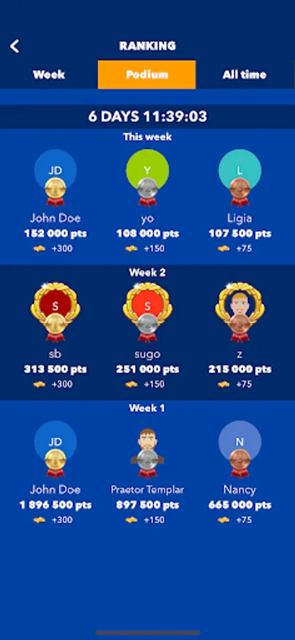 RANKING AND WEEKLY PODIUM