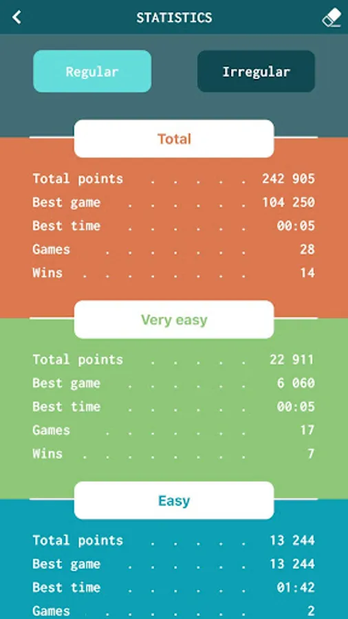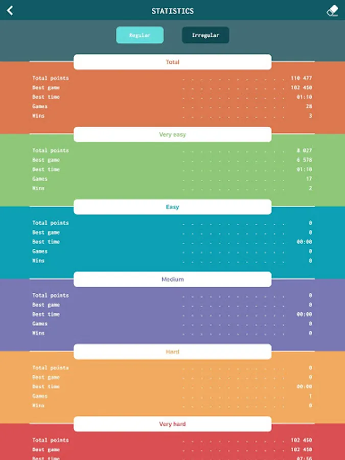 Want more? Try the irregular mode, a different and colorful challenge to keep you hooked to this amazing game!