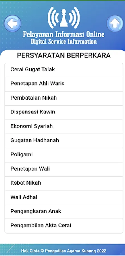 - Users can view Case Info and Session Schedule without having to come to the Kupang Religious Court office.
