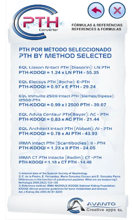 PTHi CONVERSION VALUES KDOQI / IRMA NICHOLS BY METHOD USED.