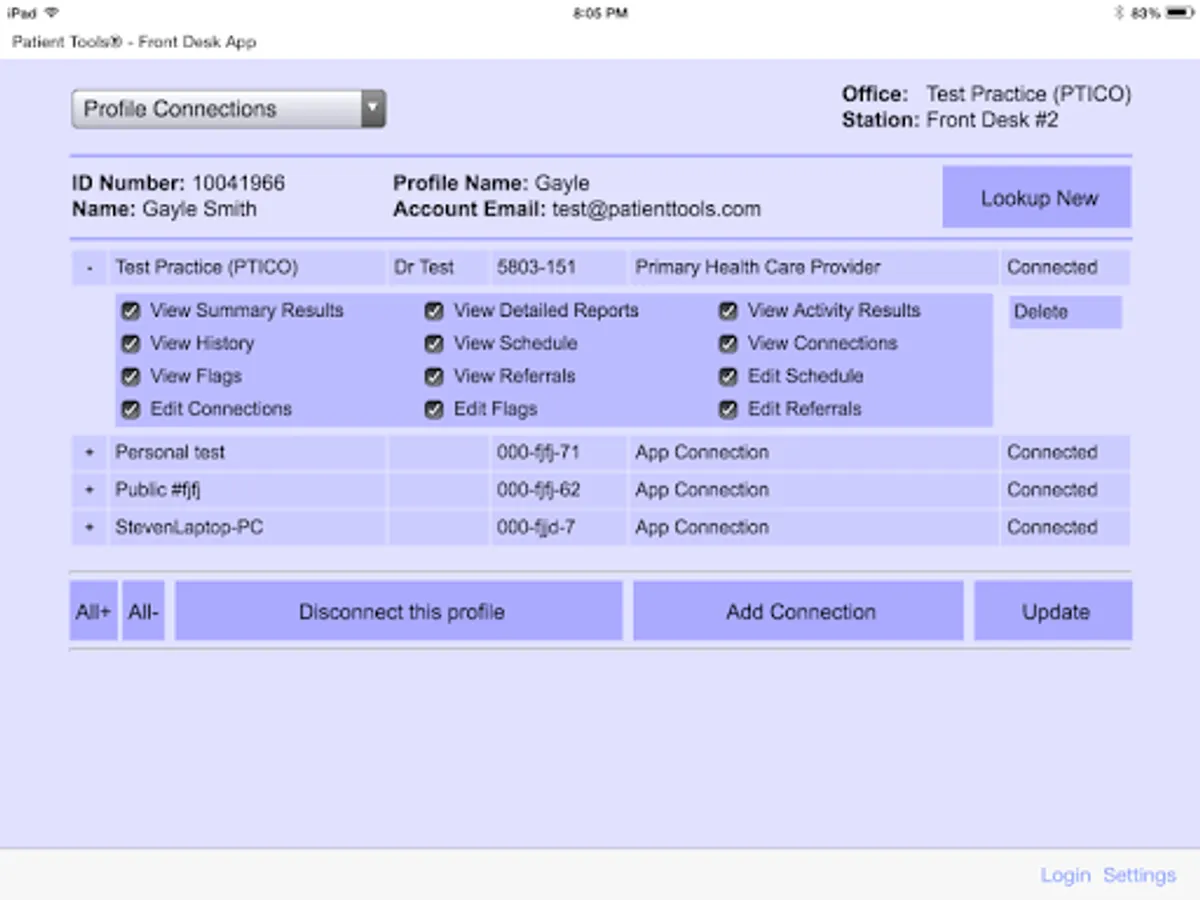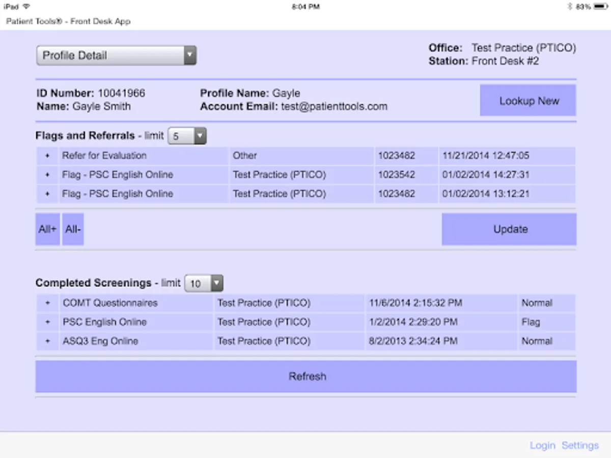 The PTI Front Desk App is a control center for the Patient Tools interview system. From this App you can: