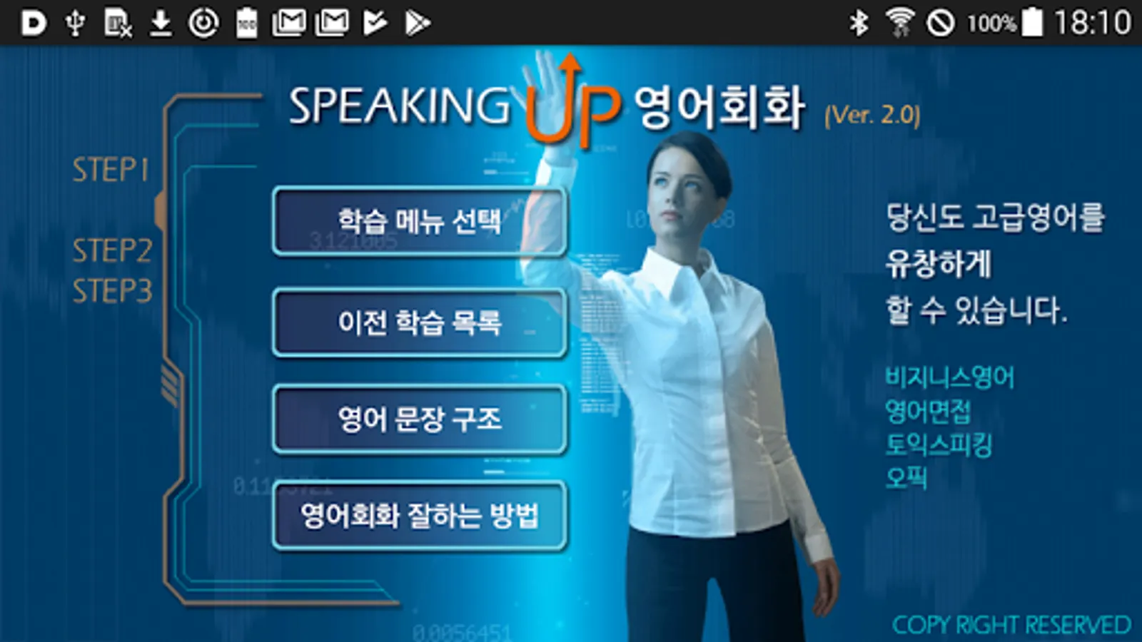 스피킹업은 영어를 스스로 구사하도록 하는 앱입니다.