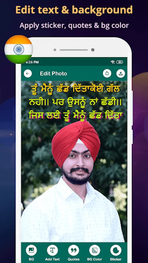 • Select HD Background and also select color for your choice and write Punjabi text on photo.