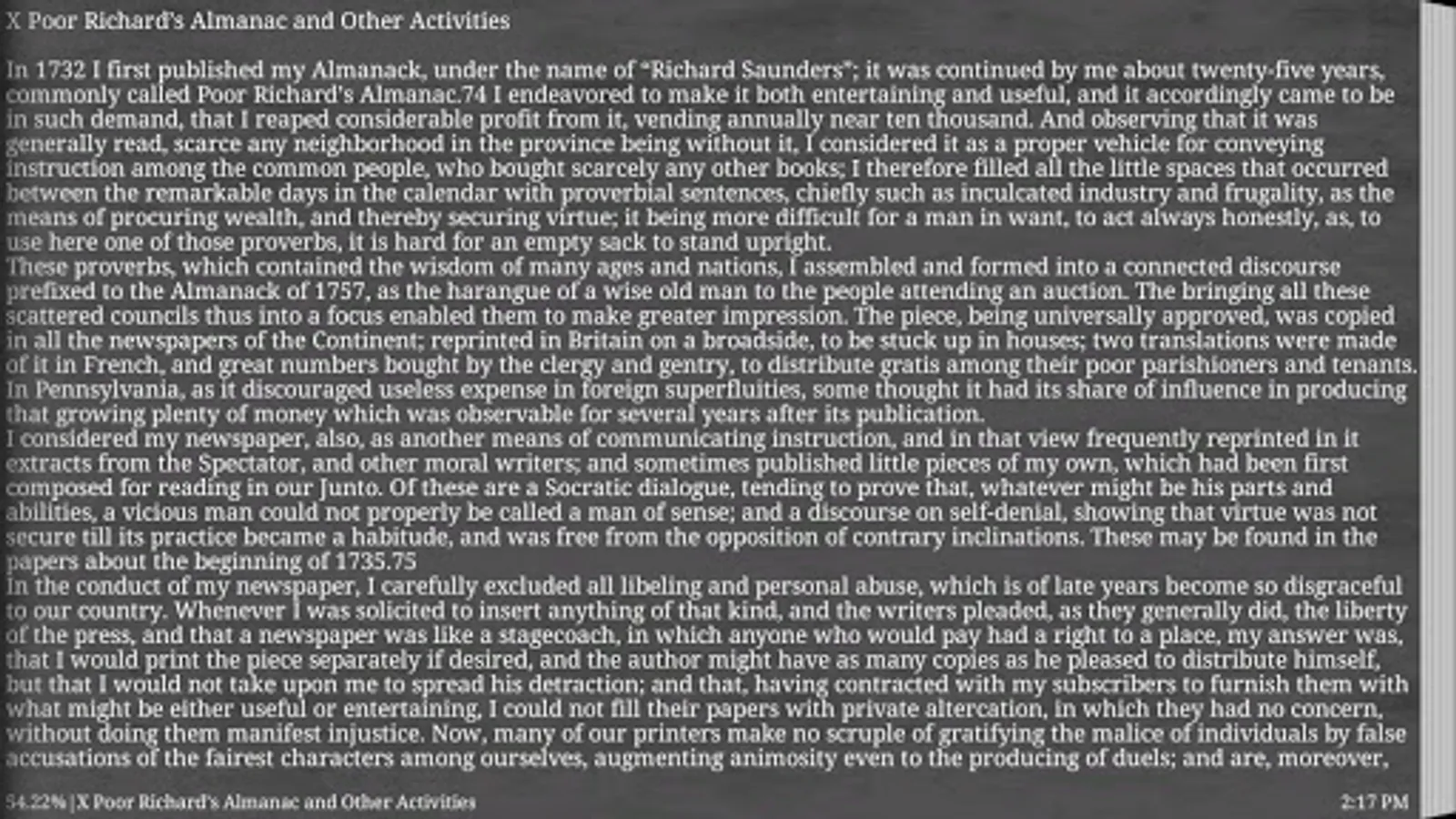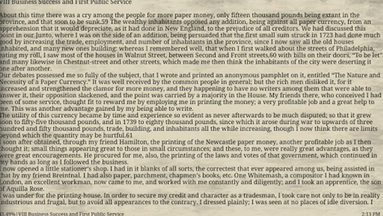 The Autobiography of Benjamin Franklin is the traditional name for the unfinished record of his own life written by Benjamin Franklin from 1771 to 1790; however, Franklin himself appears to have called the work his Memoirs. Although it had a tortuous publication history after Franklin's death, this work has become one of the most famous and influential examples of an autobiography ever written. Franklin's account of his life is divided into four parts, reflecting the different periods at which he wrote them. There are actual breaks in the narrative between the first three parts, but Part Three's narrative continues into Part Four without an authorial break.