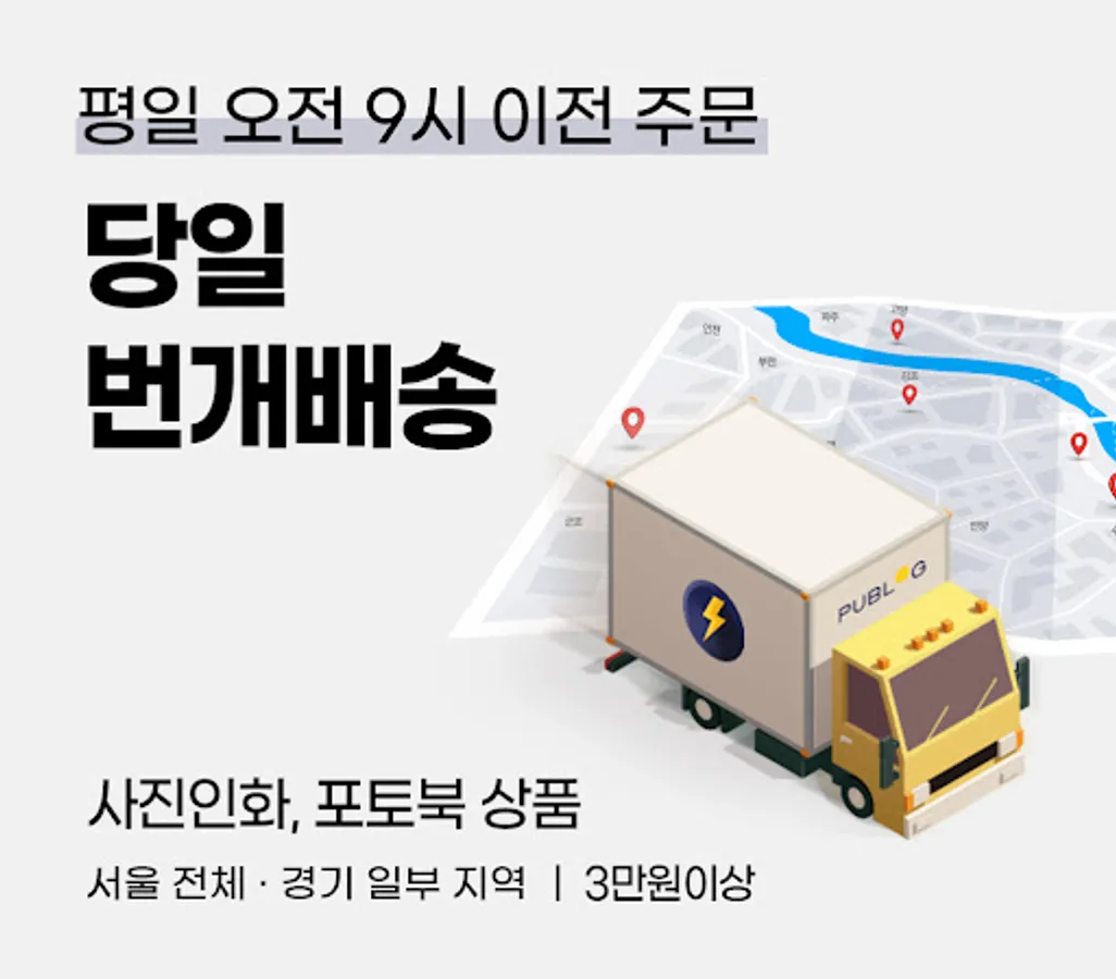 ◆ Korea's only photo print, photo book same-day lightning delivery (Free quick delivery for orders of 30,000↑ in Seoul and Gyeonggi-do before 9:00 am on weekdays)