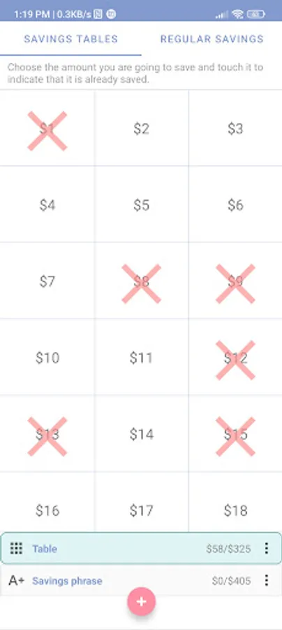 - Create tables that contain the amounts to save and cross out each amount saved to keep a good control.