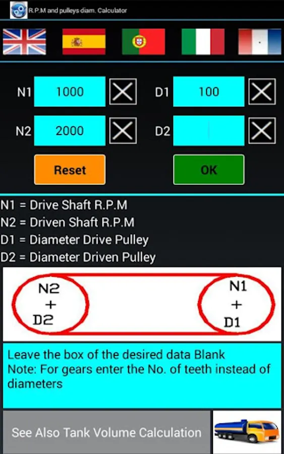 Note: For Gears Enter the Number of Teeth Instead of Diameters
