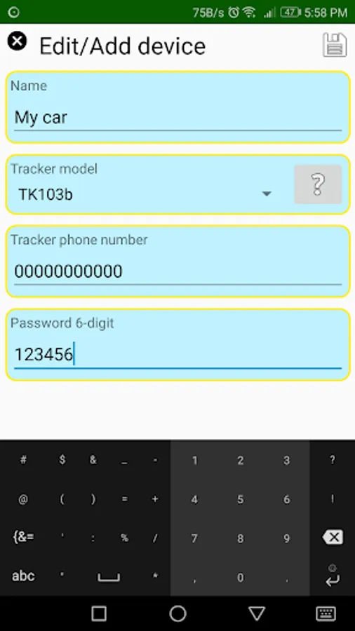 With Gps tracker SMS you can quickly send any command to your locator, just scroll through the list, click the command to send and enter any required parameters.