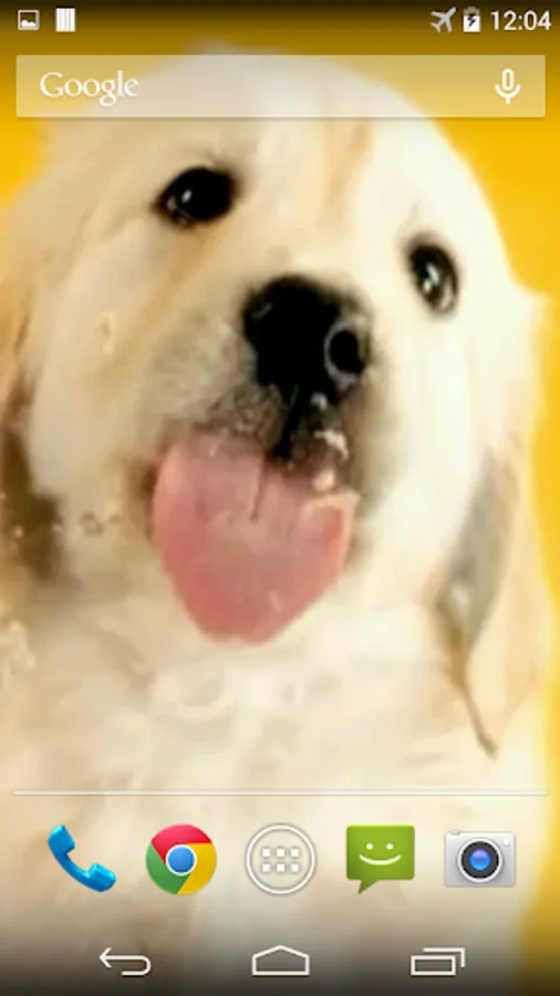Realistic video wallpaper with cute Labrador (golden retriever) puppy licking the screen.