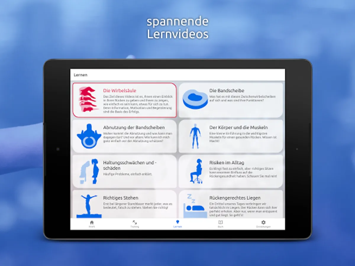 The successful motivational speaker Manuel Eckardt has developed an 8-week plan that can be performed by any problems in five minutes a day. Daily, well-illustrated exercise videos to help back pain not only alleviate but also prevent. Back sufferers can perform all the exercises based on the video of the app easily. Including your own personal coach!