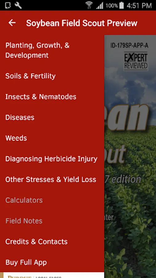 This is a free preview of the Purdue Extension Soybean Field Scout. This app has limited functionality. If you like what you see, the fully functional version of the app is available for $5.99.