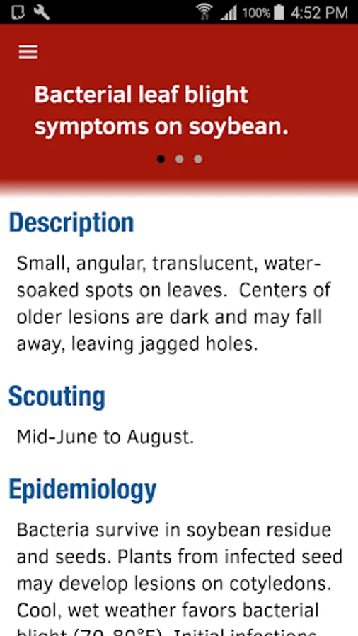 This app includes hundreds of useful, high-quality images to help you diagnose problems and understand common issues in soybean production.