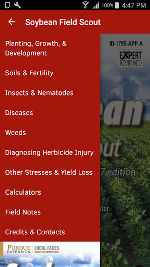 Growers and consultants have relied on the Purdue Extension Corn & Soybean Field Guide for more than 20 years. This is the perfect in-field reference that takes the popular guide to the next level. Purdue University specialists created this comprehensive, science-based app to help you effectively manage soybean production.