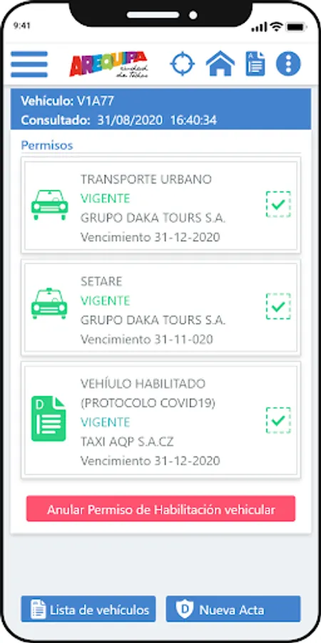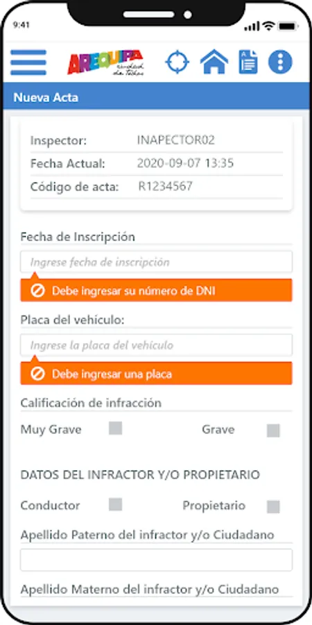 MPA Transportes App for the Inspector