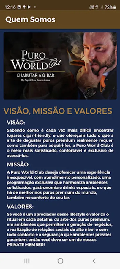 The Puro World Club chain is the largest and most specialized chain of specialty cigar franchises in the world, and the main Cigar Lounge in Brazil and also for delivery, following the tradition of the most renowned Cigar Clubs, harmonizing sophistication, elegance and style.