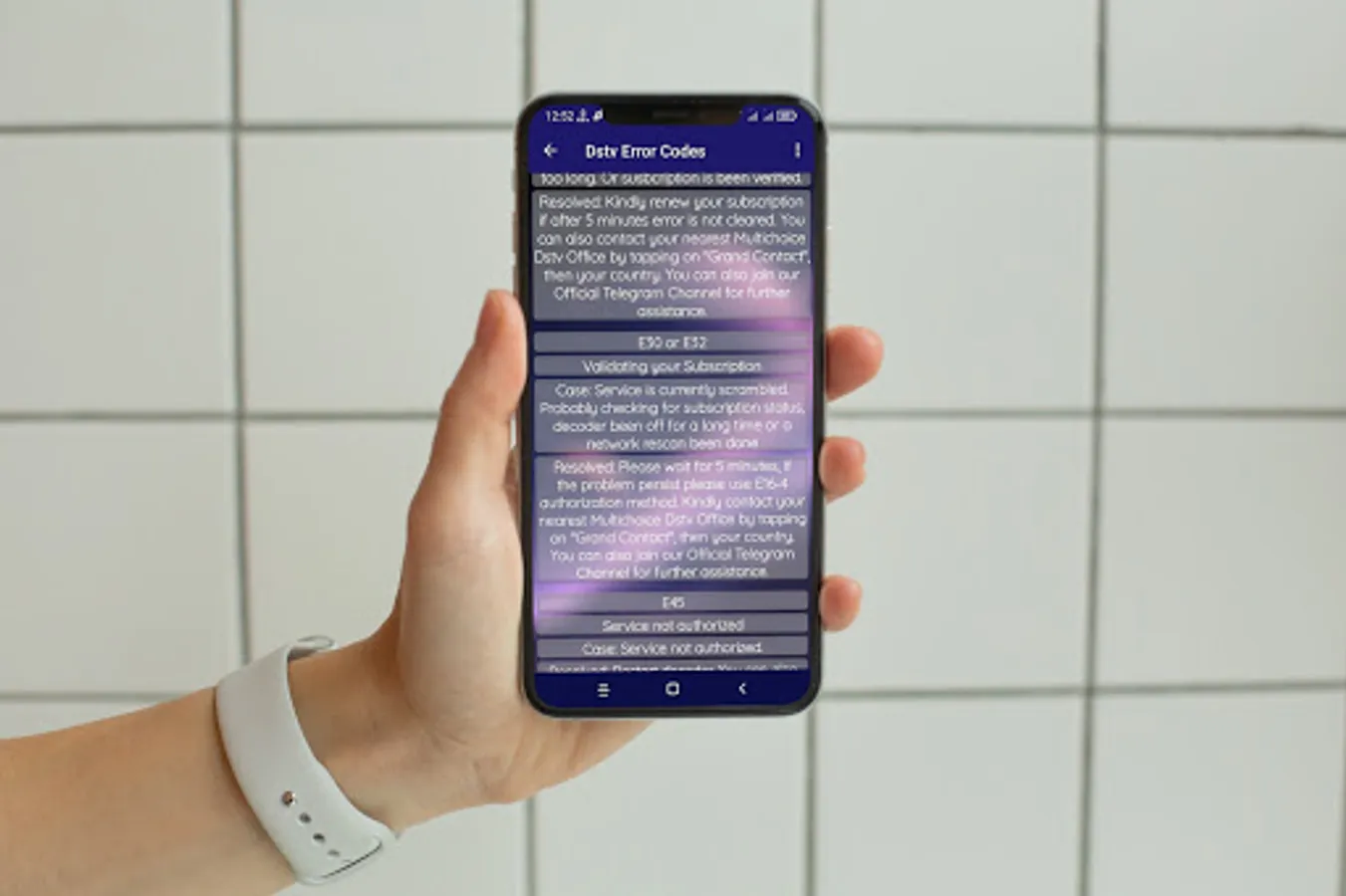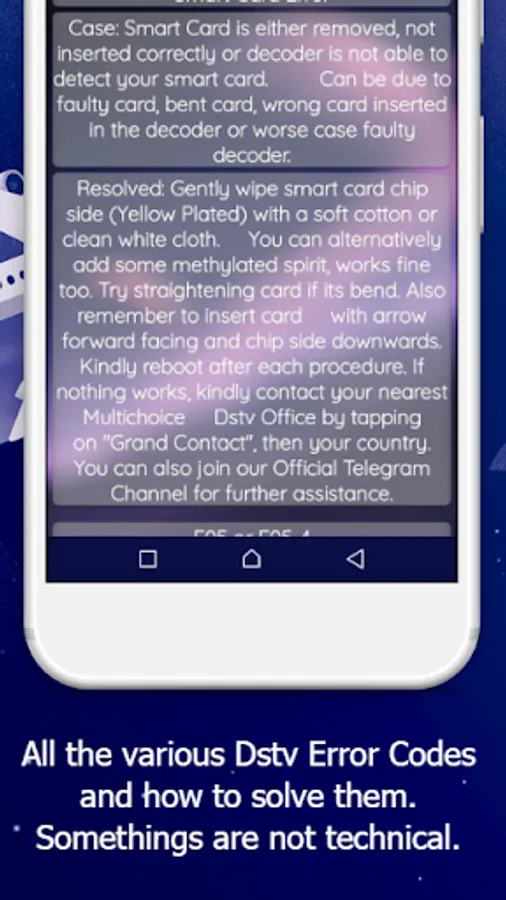 - Just a tap and you will find the various Dstv error codes and on how to solve them by yourself.
