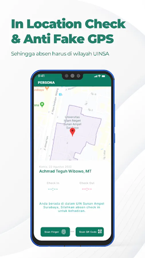 This app use to attendance record for UINSA employee base on real time location in inside area has been determined.