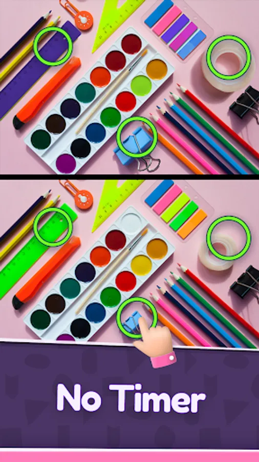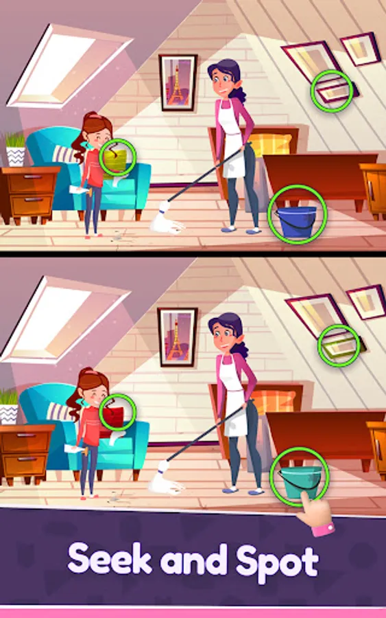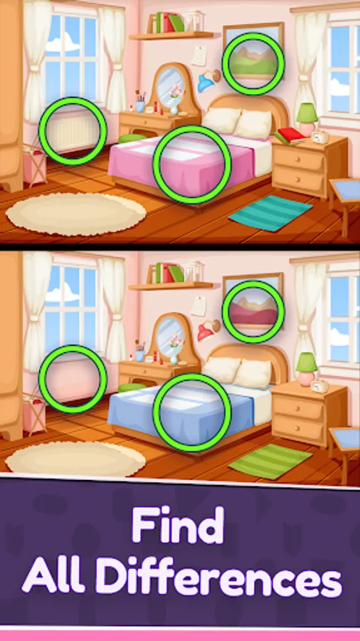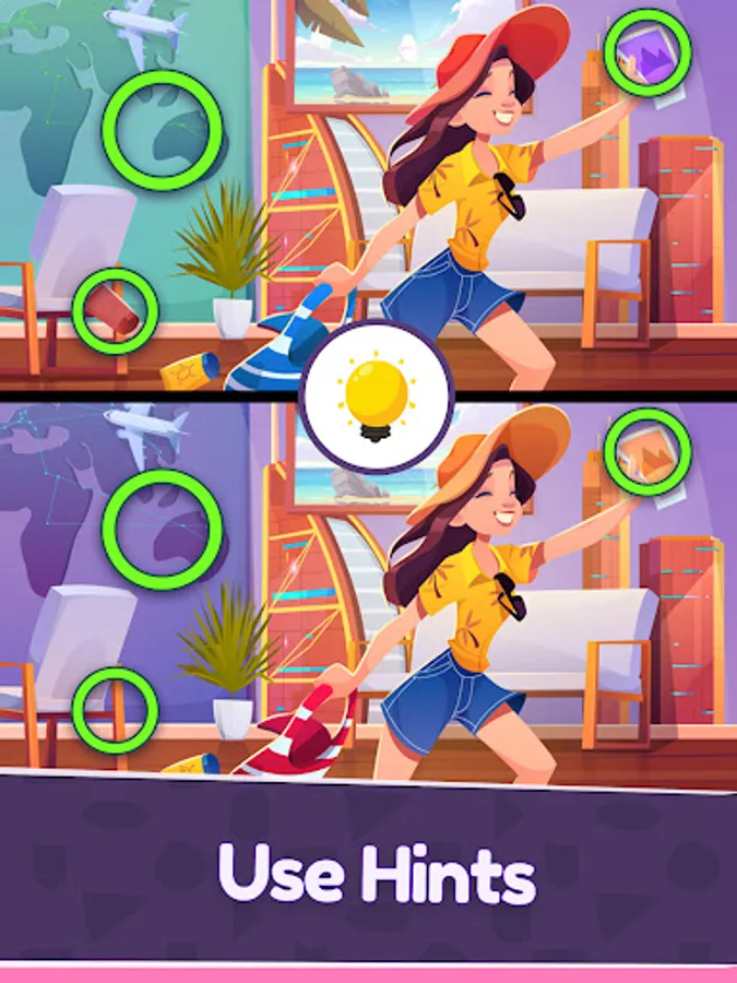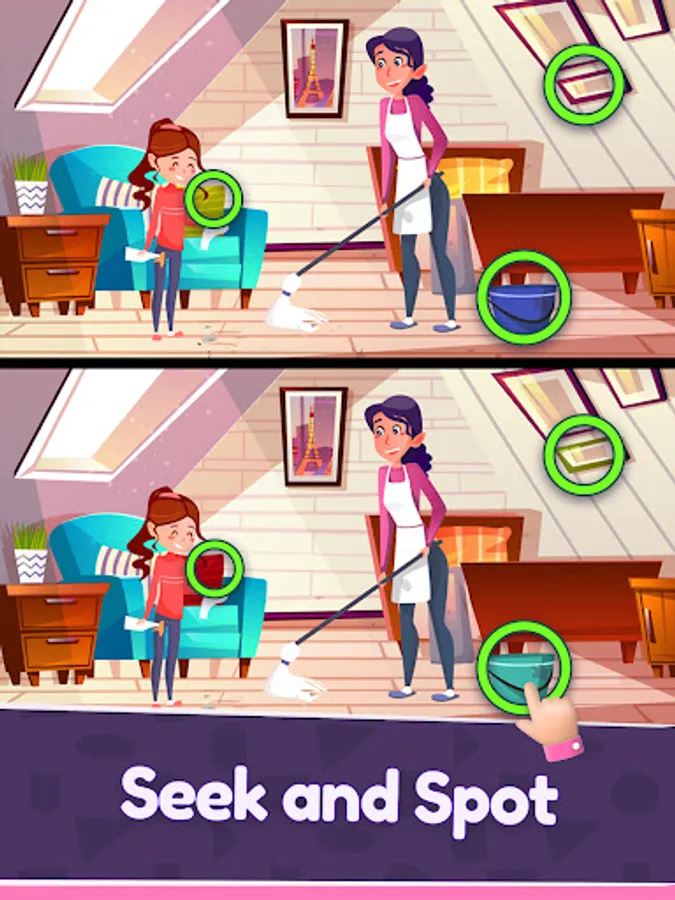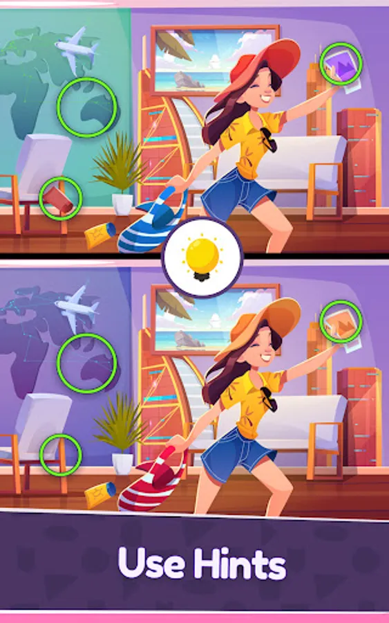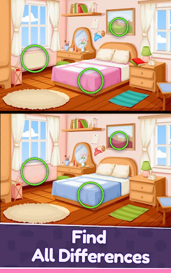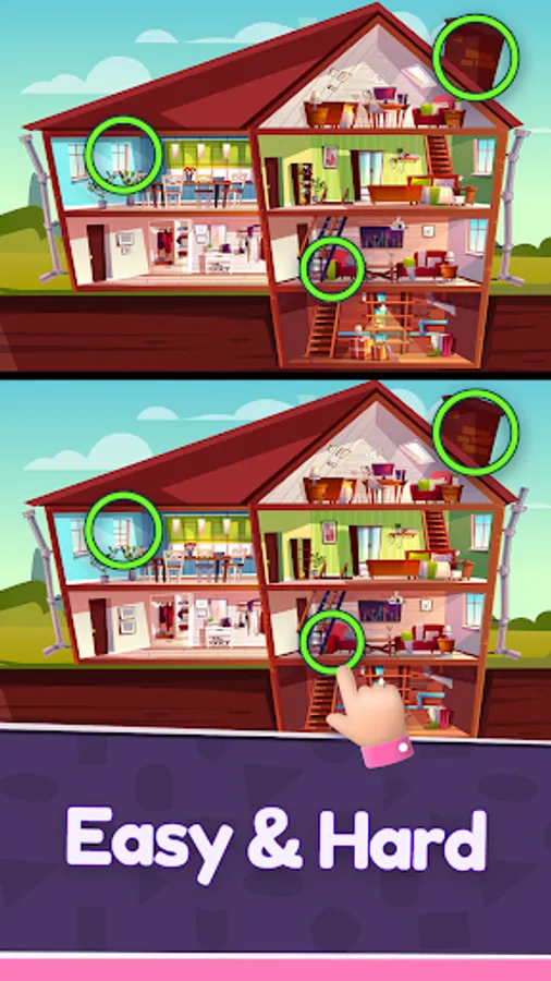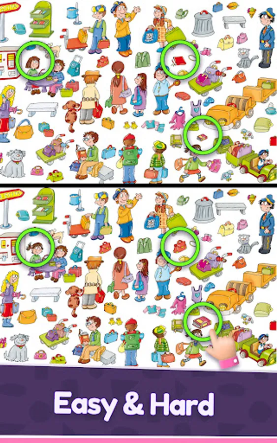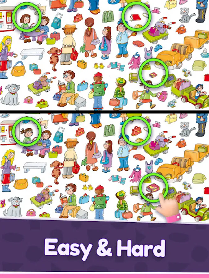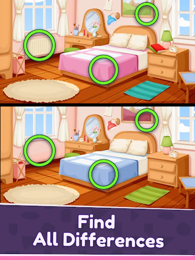 Find Differences is a classic relaxing game around the world. It is a type of puzzle where players must find a set number of differences between two otherwise similar images, whether they are illustrations or photographs that have been altered with photo manipulation. Spot the difference games are also known as photo hunt games and were commonly found in activity books or newspapers before the E era. But now! Our game app enables you to easily play tons of Find the Difference games on any mobile device anywhere & anytime.