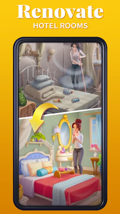 Another plot twist that Elsa wasn’t ready for is the “curse of hoteliers” that hangs over the city for many years. Nobody’s decor skills have been able to lift it, so Elsa will be the next one to try. Only she can unravel the tangle of intrigues and bring the hotel to prosperity! Put your seatbelt on and prepare for a ride with our merge and home design games!