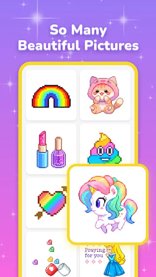 Whenever you want to relax, just open Paint by Number - Pixel Art. You will find so many fascinating pictures like ice creams, unicorns, flowers