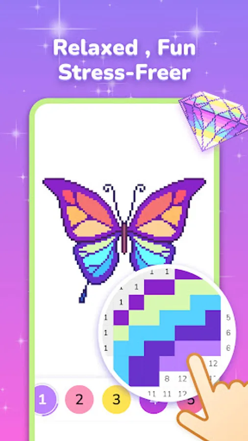 ✔ Coloring by number is simple. Browse pictures, then just tap a color number, and start painting the image. You will always know what color to use and where while playing Pixe coloring games.