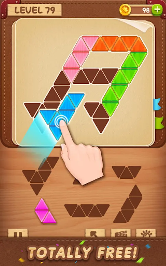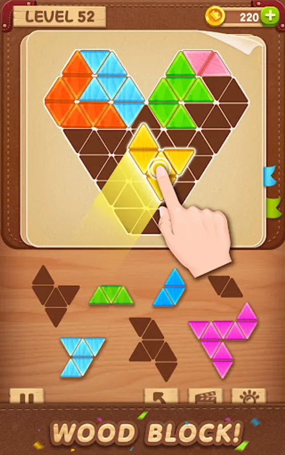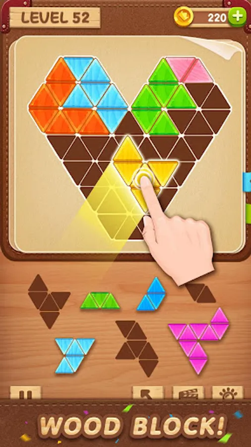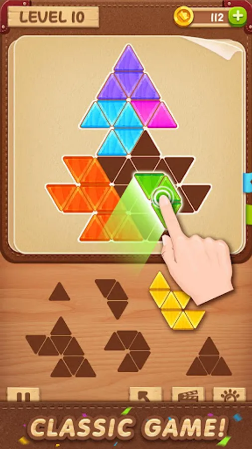 It contains a variety of block puzzle shapes in the game, such as triangle, hexagon,Square.