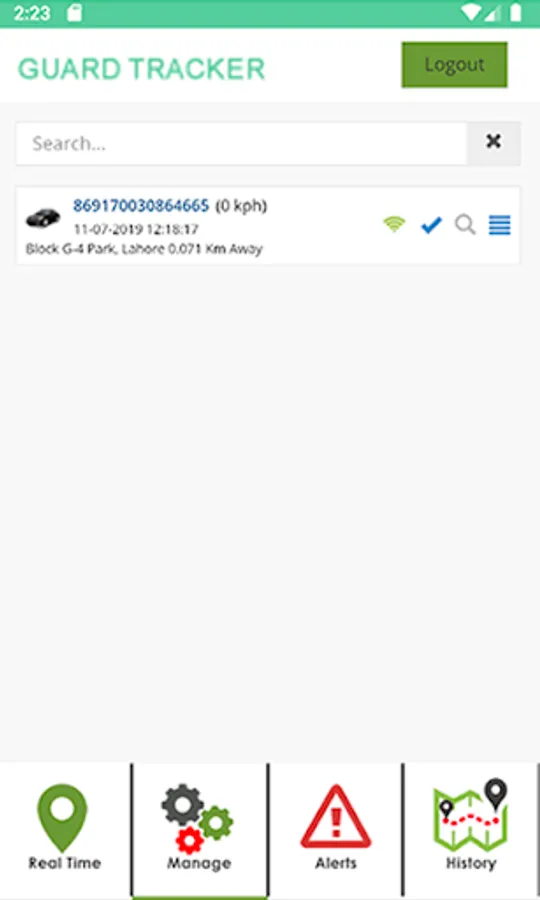 Self Tracker application for Guard Tracker Devices designed by Commander Akram
