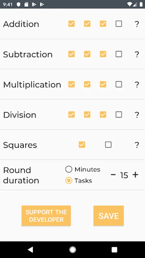 - the switching-on of squares (especially the second level of complexity) with the multiplication and division enabled allows you to get extremely complex tasks.