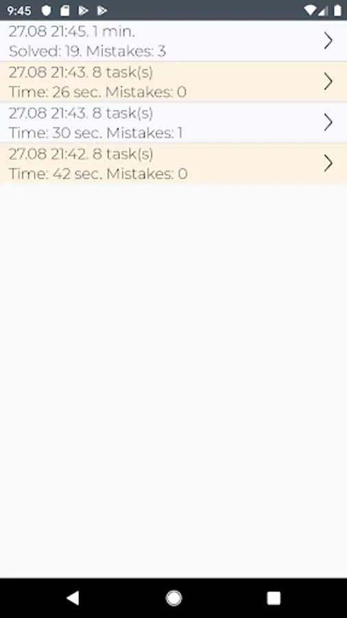 All your achievements are saved, you can always look at your previous results (up to the time spent on a specific task) and analyse your development.