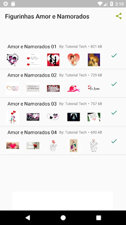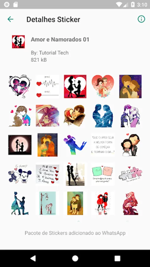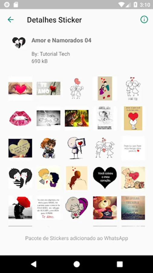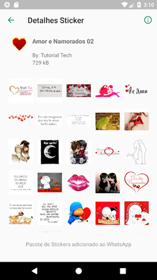 WhatsApp stickers pack of love, hearts, I love you, declarations and Valentine's Day, Passionate and in this version is available 12 packages with an average of 340 stickers.