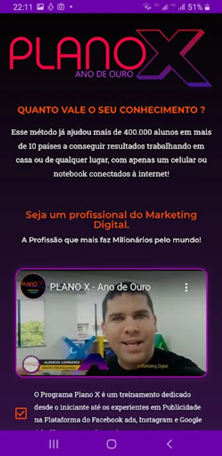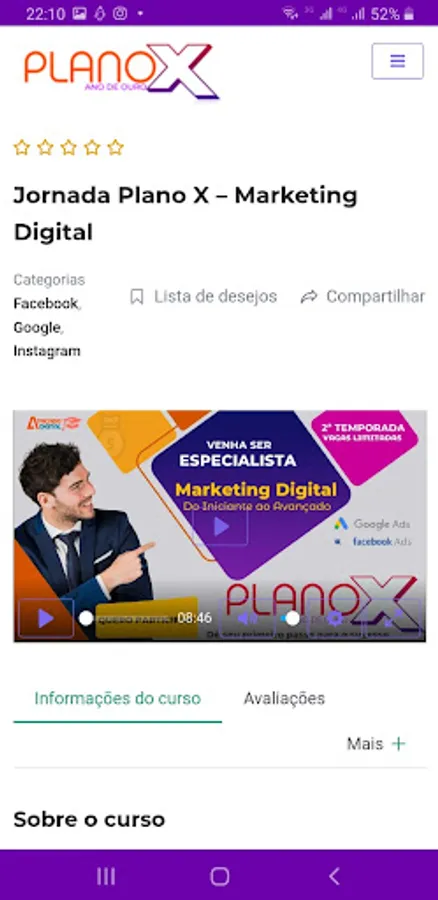 Jornada Plano X is an Online Platform for courses in the Digital Marketing market.
