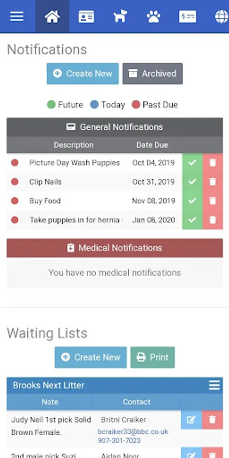 Web-based management software for dog & cat breeders. Easily store medical records, view upcoming heats and litters, receive notifications for upcoming appointments & more.