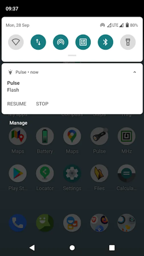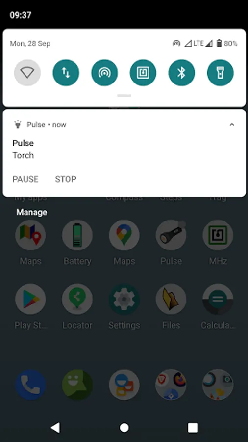 Start the torch or pulse signal and close the app. A notification will show as long as the app is working.