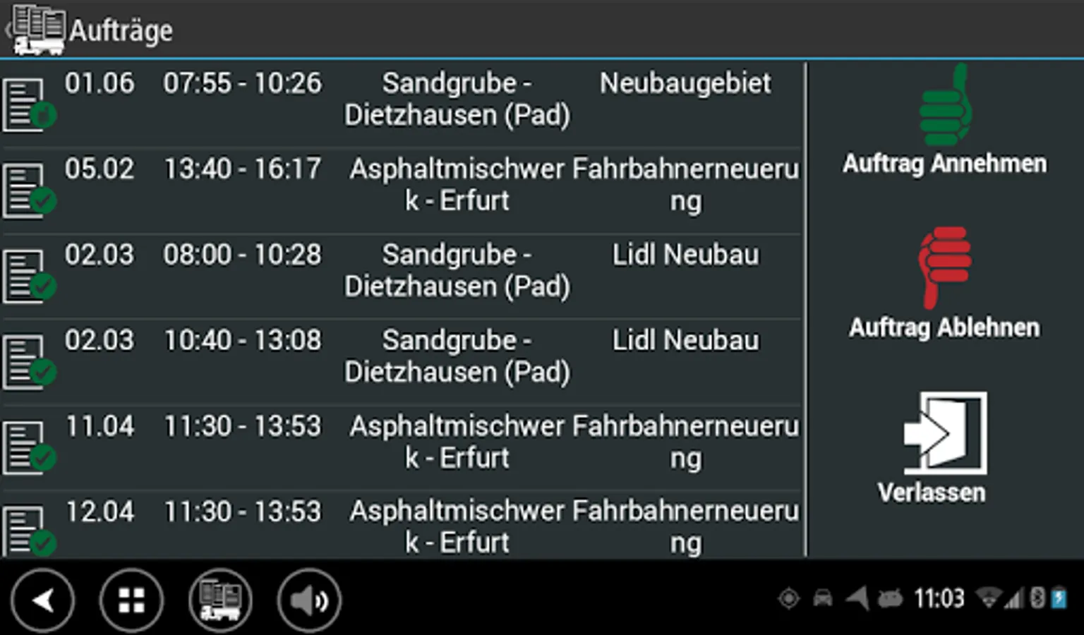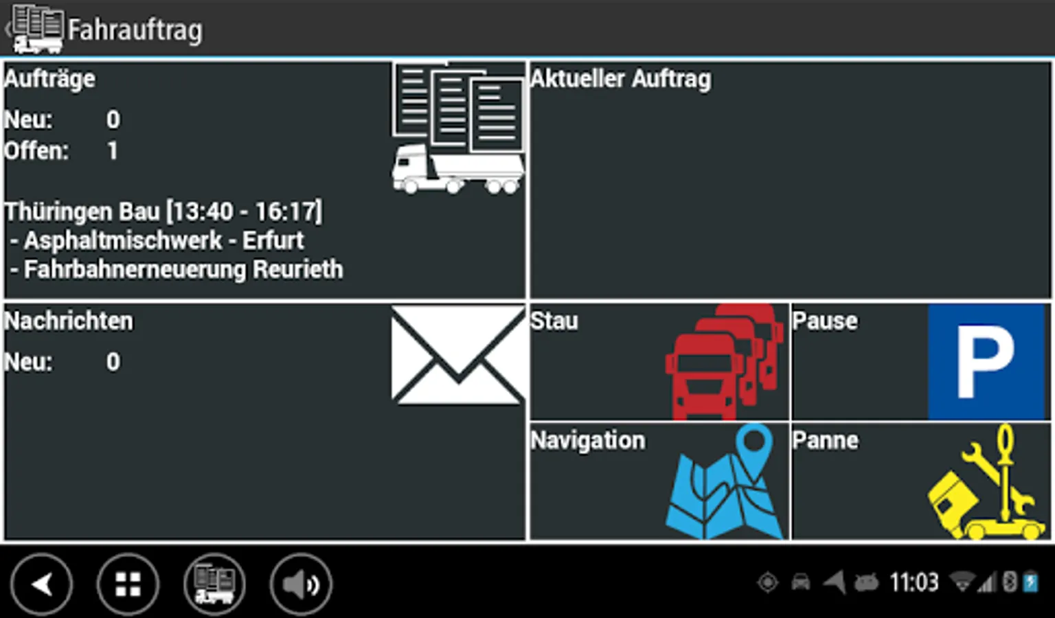PxP Conatiner transport orders are used to communicate between the dispatcher and the driver. The disposition sends orders, tours and information to the vehicle, which the driver can process via PxP Conatiner and thereby report each order status back to the disposition.