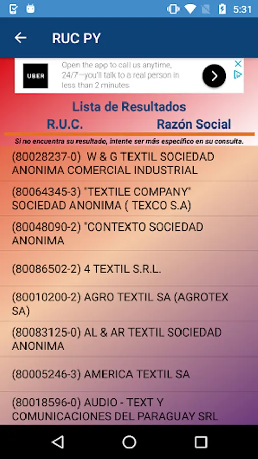 Search data of Paraguay taxpayers by document number, by R.U.C or by Social Reason.