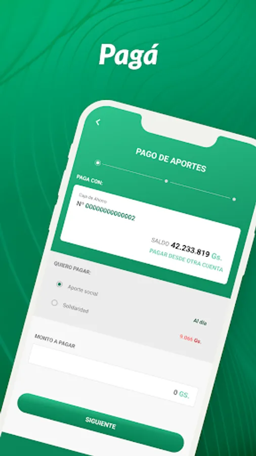 - Pay for active services with the Cooperative: Contribution, Solidarity, Credit, Credit Card, among others.