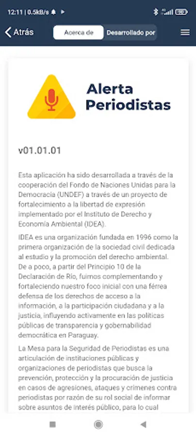 This application has been developed through the cooperation of the United Nations Democracy Fund (UNDEF) through a project to strengthen freedom of expression implemented by the Institute of Environmental Law and Economics (IDEA).