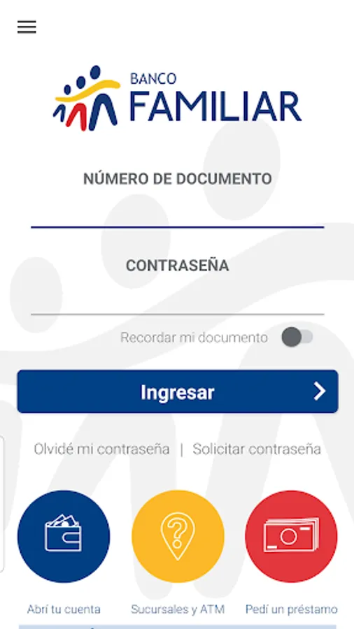 To enter, you just must use the same PIN access to the Web you have accessed Banking. If you are not subscribed to the Web Banking you can request your username and PIN entering www.familiar.com.py, going to the nearest or by calling * 3322 branch.