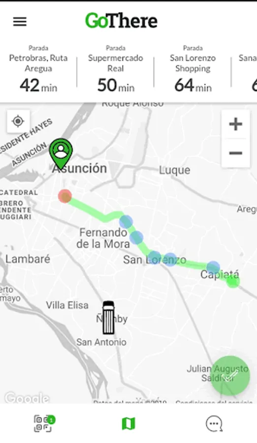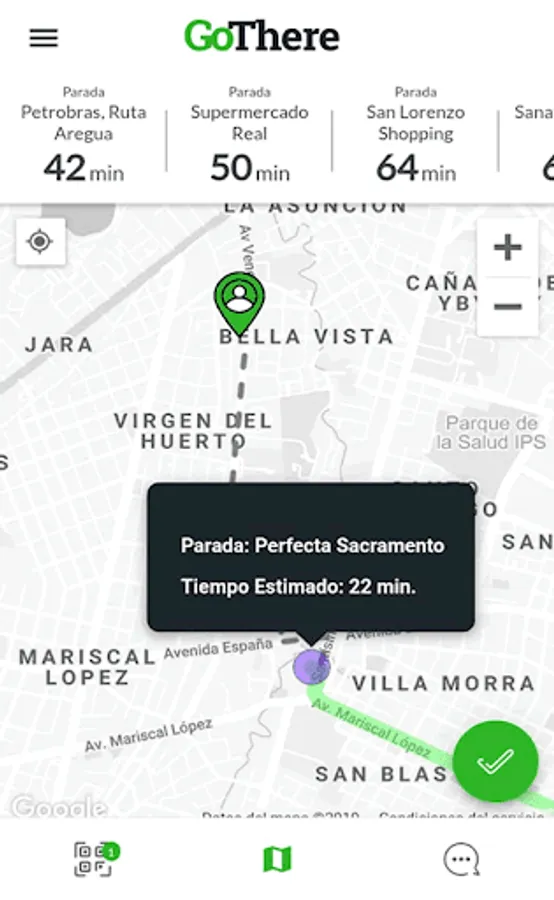 Application for users of the urban transport service GoThere. With pre-established routes and stops for fixed ascent and descent. Creation of the ticket using QR code. The user can choose his ascent stop, obtaining the calculation of the arrival time walking or by vehicle and also marking his final destination. The app has a chat with the other passengers of the van and with GoThere customer service.