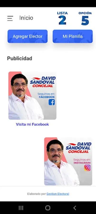 Innovative form of electoral organization of the candidate David Sandoval, who participates as a candidate for councilor in option 5 of list 2 of the PLRA.