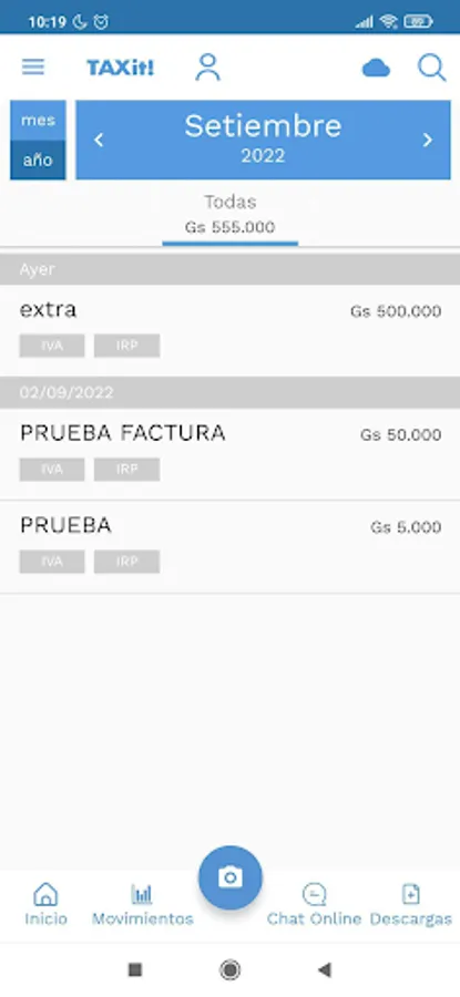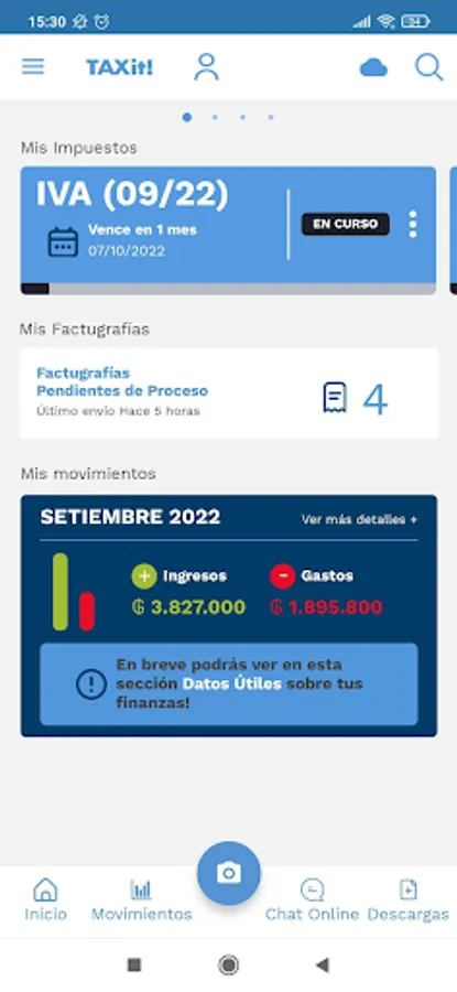 The latest in mobile applications whose main function consists of the liquidation process and the payment of taxes (IRP and / or VAT), by simply loading data through the photographic taking of issued and acquired invoices, which the application classifies in the corresponding subsection.