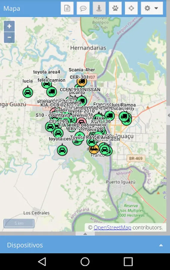 Application with access to the platform of the company TuRastreoGps for real-time tracking of vehicles with different functions, and history of events and routes.