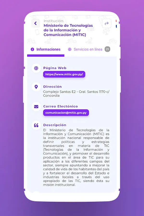 "Paraguay" is constituted as the single window of access to all the information, services and procedures offered by the institutions of the Paraguayan State in a single access point, at any time, 24 hours a day, using any device and from any point country and world.