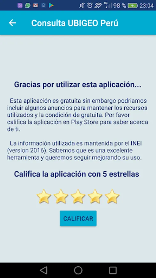 This application does not represent the government entity (INEI) nor does it have a direct relationship with it.