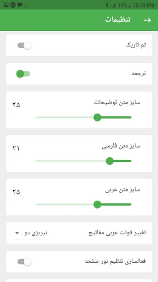 - Ability to resize Arabic texts, translations and explanations separately