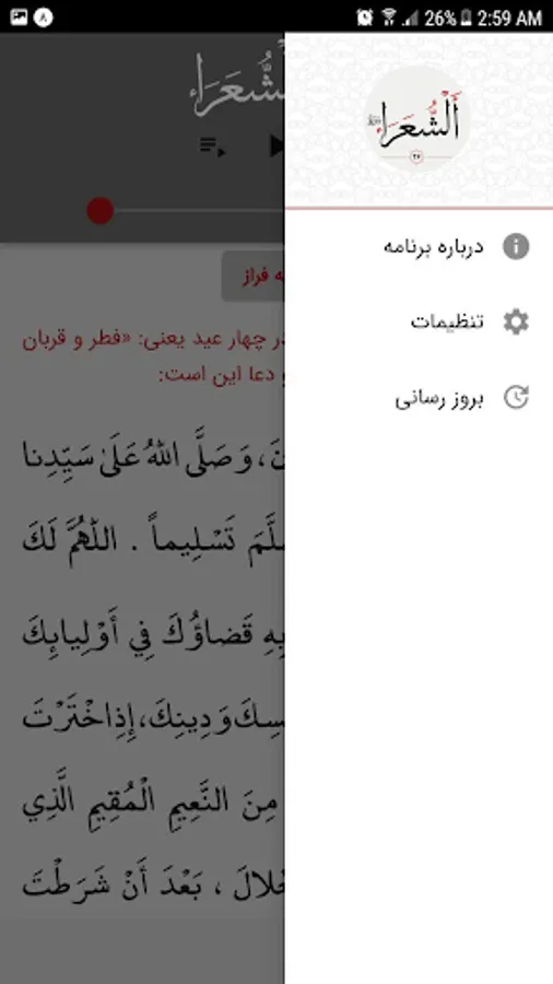 The effort of the software group of Paydarat is to be able to create a simple, fast and at the same time useful Surah Al-Shaara without additional features in the program, so that, God willing, a small and small help will be provided for everyone to have Surah Al-Shaara with them.