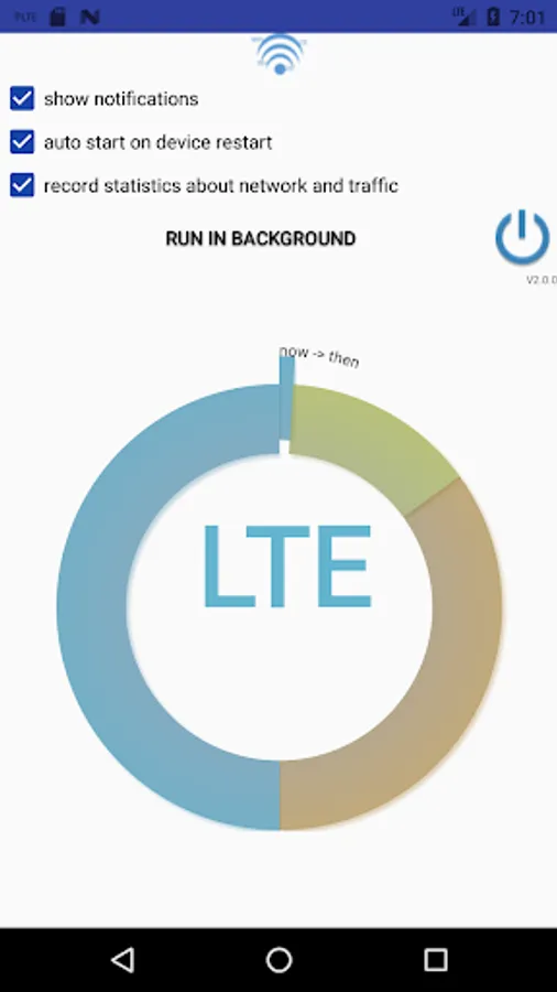 shows a notification in the bar with the type of the data network: wifi, 2G, 2G+, 3G, 3G+ and LTE